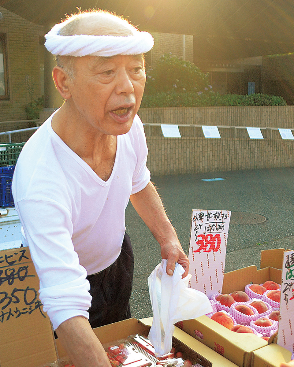 とある市で、一際目立つ店を発見した。「らっしゃい。天気が良いからおまけしちゃうよ」「今日はかあちゃんの命日だ。おまけで2個つけちゃうよ」などと、ダミ声だけれど心地よい、まるで上野のアメ横かと錯覚するようなテンポ良い喋り口。買い物客は思わず足を止め、商品を手に取り、笑顔で買っていく―。周囲の客も2人のやり取りを見て楽しんでいる。時には行列を作り、客足が途切れれば話術で客を呼び込む、名物店主に話を聞いた。