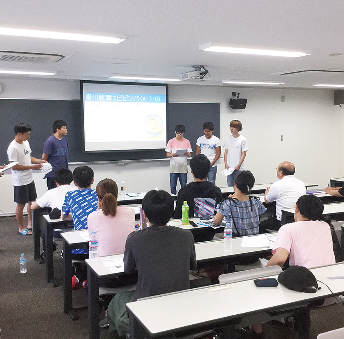 昨年度は、10月の松陰祭(学園祭)で学生が愛川ブランドの商品を販売するなどPR活動で協力。今年度に入ってからは、鷲尾氏のゼミ生や観光マーケティング論の講義を受講する学生など12人が参加し、町に関する研究発表や、実際に愛川町を訪問して事業者へのヒアリングなどを行った。6月には愛川ブランド食材の試食を実施し、「愛川の土地と水の素晴らしさ」「作り手のこだわり」をテーマにアイデア出しが行われた。