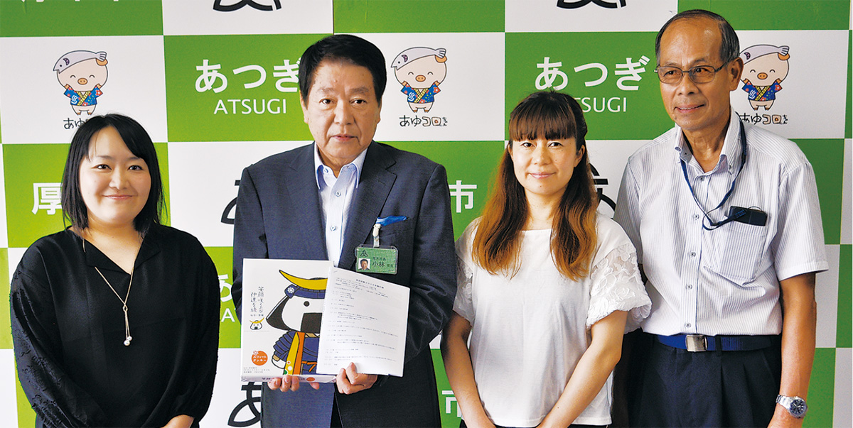 相模国飯山白龍太鼓保存会(鈴木由美会長)は9月5日、厚木市役所を訪れ、小林常良市長に東日本大震災で被災した、宮城県石巻市の旧・雄勝(おがつ)中学校と、太鼓を通じた交流を行ったことを報告した。