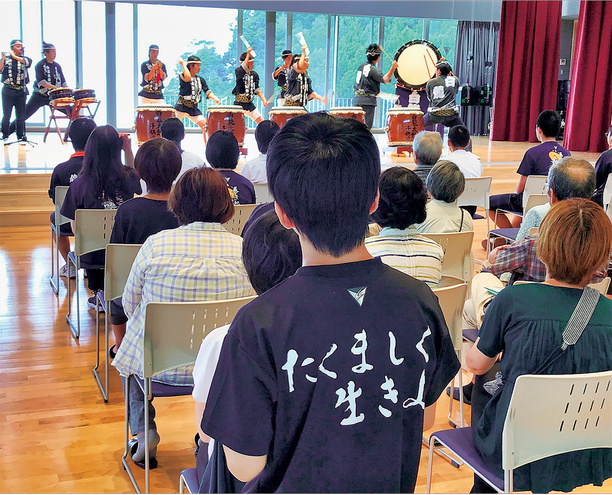 雄勝中学校では、太鼓の演奏のほか、石巻ならではの海の幸でおもてなしされたバーベキューなど、交流を楽しんだ。引率した田墨(たずみ)沙優里さんは、「石巻のみなさんは、毎回訪れるたび、温かく迎えてくださり、心あたたまる気持ちになります。今回は日程の関係で2カ所でしか演奏できませんでしたが、充実した時間を過ごすことができました」と笑顔で感想を話した。