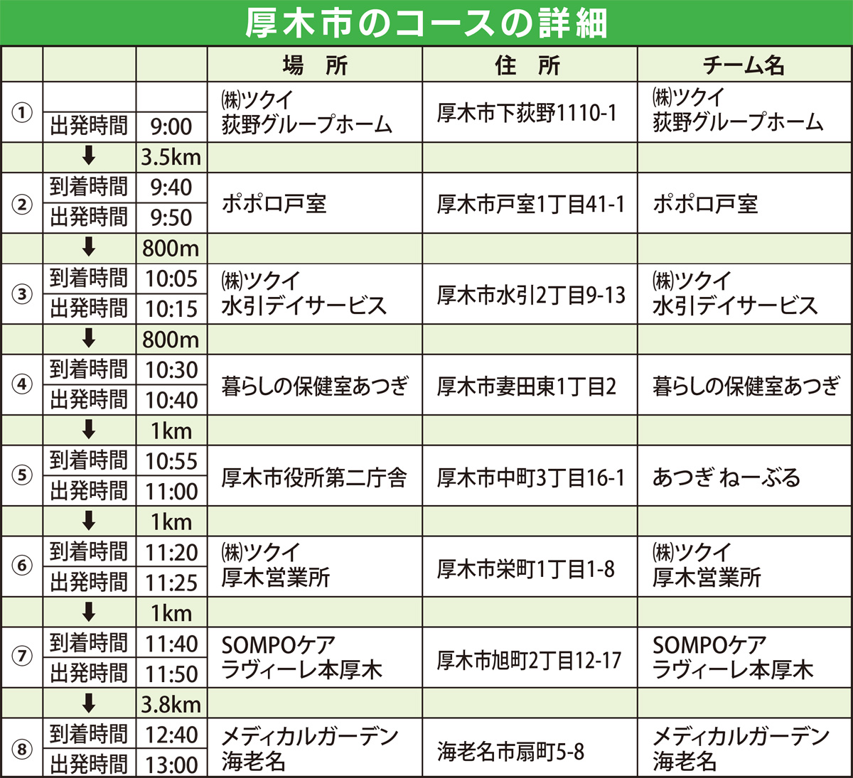 認知症への理解を広めるために、全国で行われている同イベント。厚木市がコースになるのは今年で3回目。今回は厚木市をスタートして、市内の福祉事業所などを経て、海老名市、伊勢原市、大磯町までタスキをつなぐ。コース途中の暮らしの保健室あつぎ(厚木市妻田東1の2/午前10時30分頃)、厚木市役所第二庁舎(厚木市中町3の16の1/午前10時55分)では、参加者が集まり、写真撮影や交流を深める。