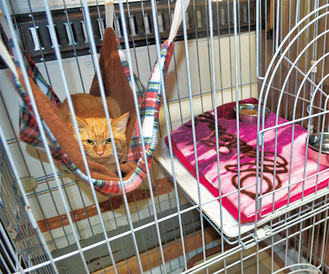 施設長の松木彰詞さんは、「とてもここでは活動できない危険な場所になってしまいました」と肩を落とす。すでに移設を考え残った危険な部分の建物を解体する作業を行っている。それに伴い猫たちも一時的に空いている場所に移動。取材した際には、狭い部屋のケージの中でじっとする子猫の姿も見られた。