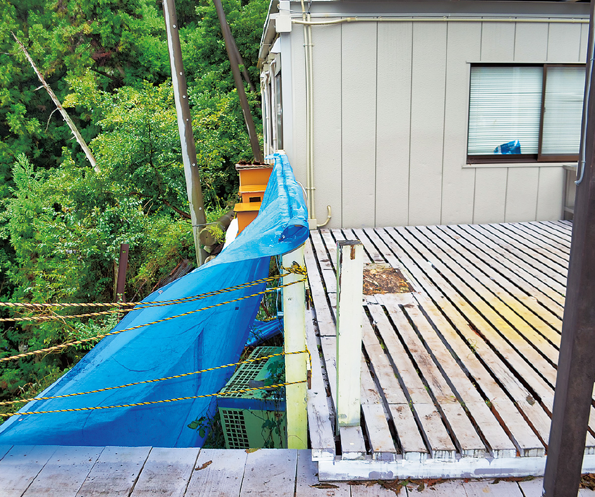 しかし、12日に襲った台風19号により、敷地を巻き込む土砂崩れが発生。崖に面していた施設の外側が下の沢まで滑り落ちた。幸い使用していない大型ケージやテラス部分だったため、スタッフや犬猫は大事に至らなかったが、残った事務所部分や猫舎として使用していたコンテナ等の土台部分も半分土が無い危険な状態になってしまった。