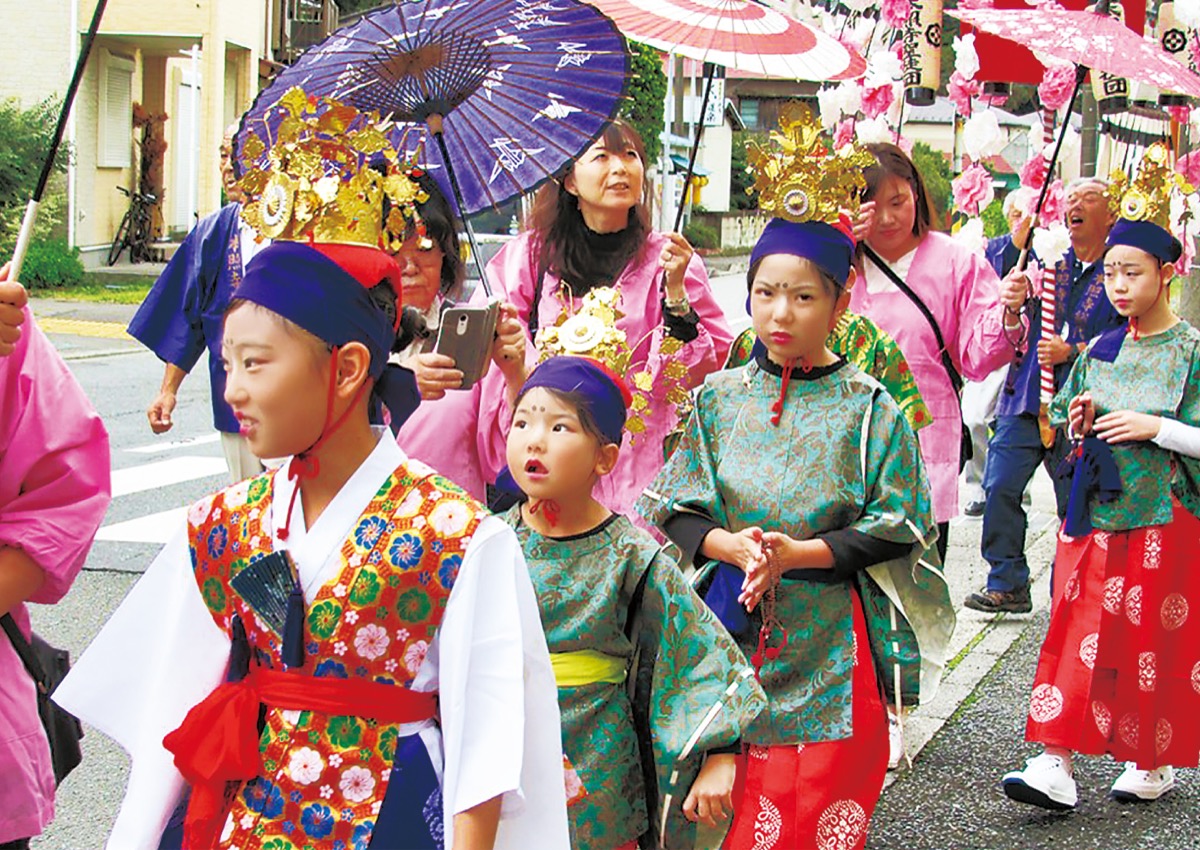当日は、写経や竹灯ろうづくりなど様々なイベントが行われ、訪れた人らが参加して楽しんだほか、特に稚児行列と万灯行列が目を惹いた。