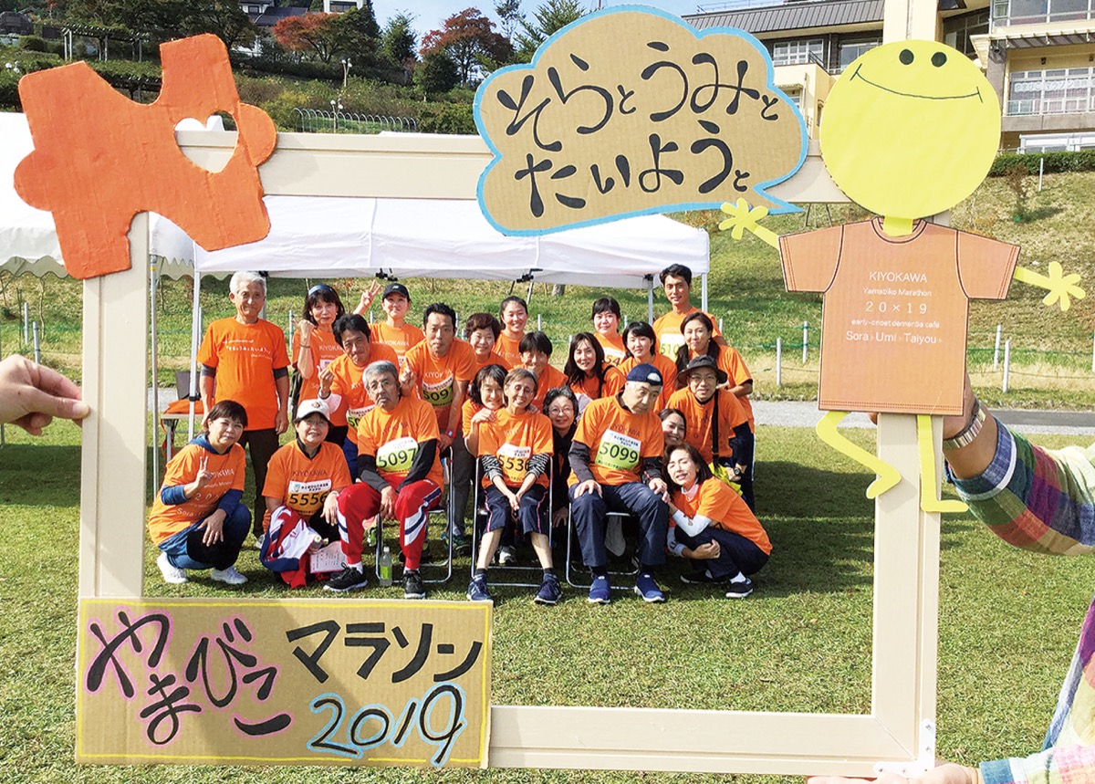 若年性認知症(65歳未満で発症した認知症)の当事者や家族らの交流の場を設け、支援活動を行っている「そらとうみとたいようとの会」(厚木市戸室)が、11月3日、清川村宮ヶ瀬湖で開催された「清川やまびこマラソン大会」の会場で啓発活動を行った。