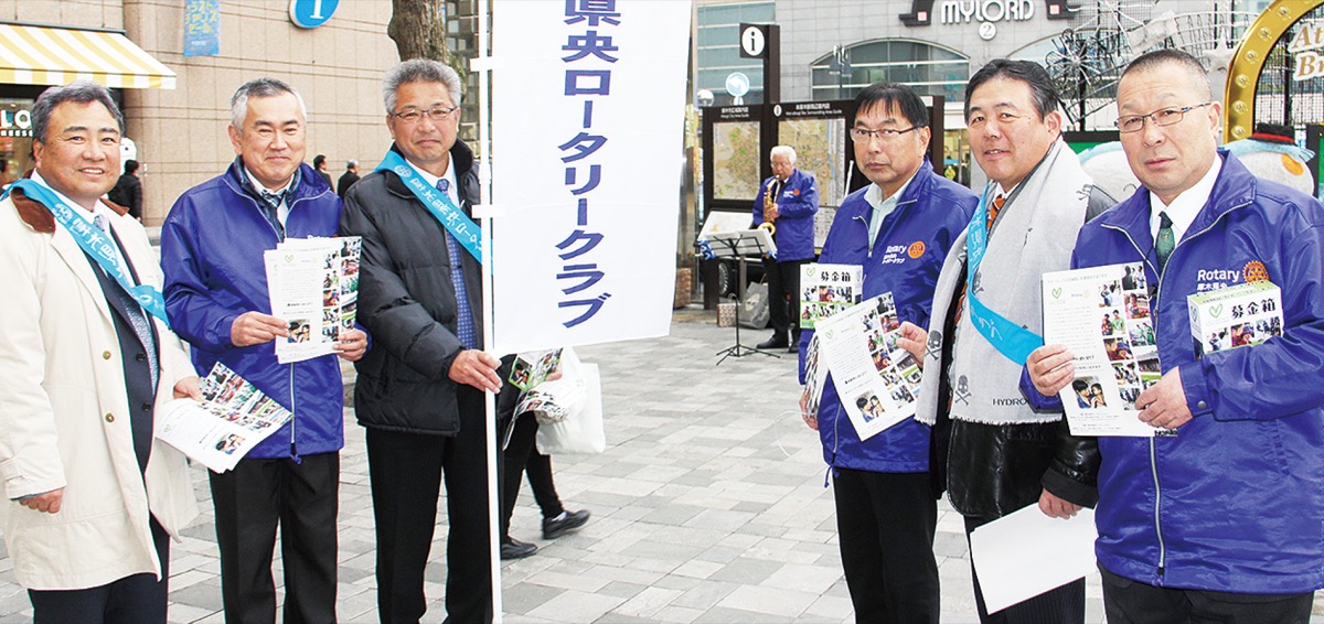 厚木県央ロータリークラブ(井寛明会長)は1月24日、本厚木駅北口でラオスの小児医療を支援する街頭募金活動を行った。=写真