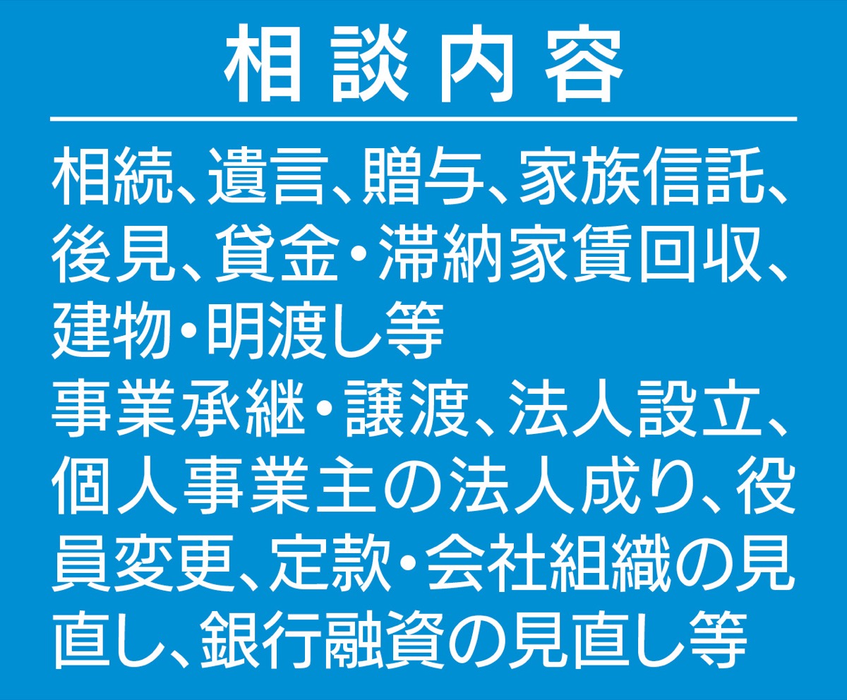 終活カウンセラーや民事信託士の資格も持つ福住代表は「正式に依頼を受けるまで無料で承ります。安心してご相談ください」と話す。相談は予約制で先着6組。申込みはお電話で。4月以降は毎月第3土曜日開催。