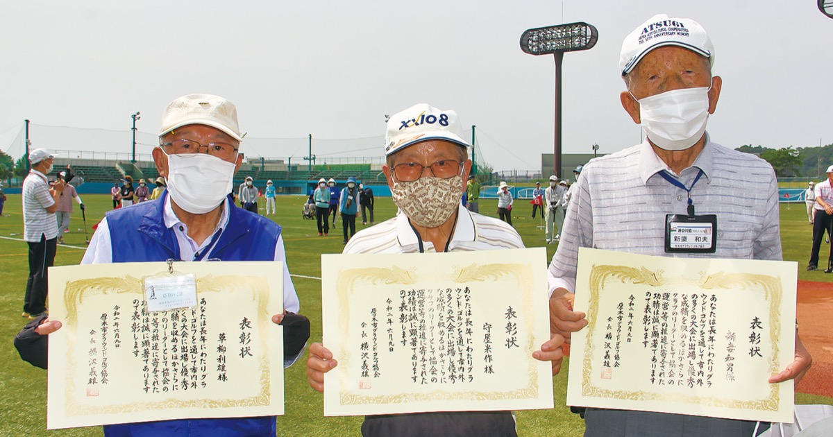 この日は同協会の2020年功労者表彰も行われ、新妻和夫さん、守屋米作さん、草柳利雄さん、嶋崎謙三さんに表彰状が送られた。横沢会長は「高齢者が頑張っている。みんなで100歳までの気持ちで頑張ります」と笑顔で話した。