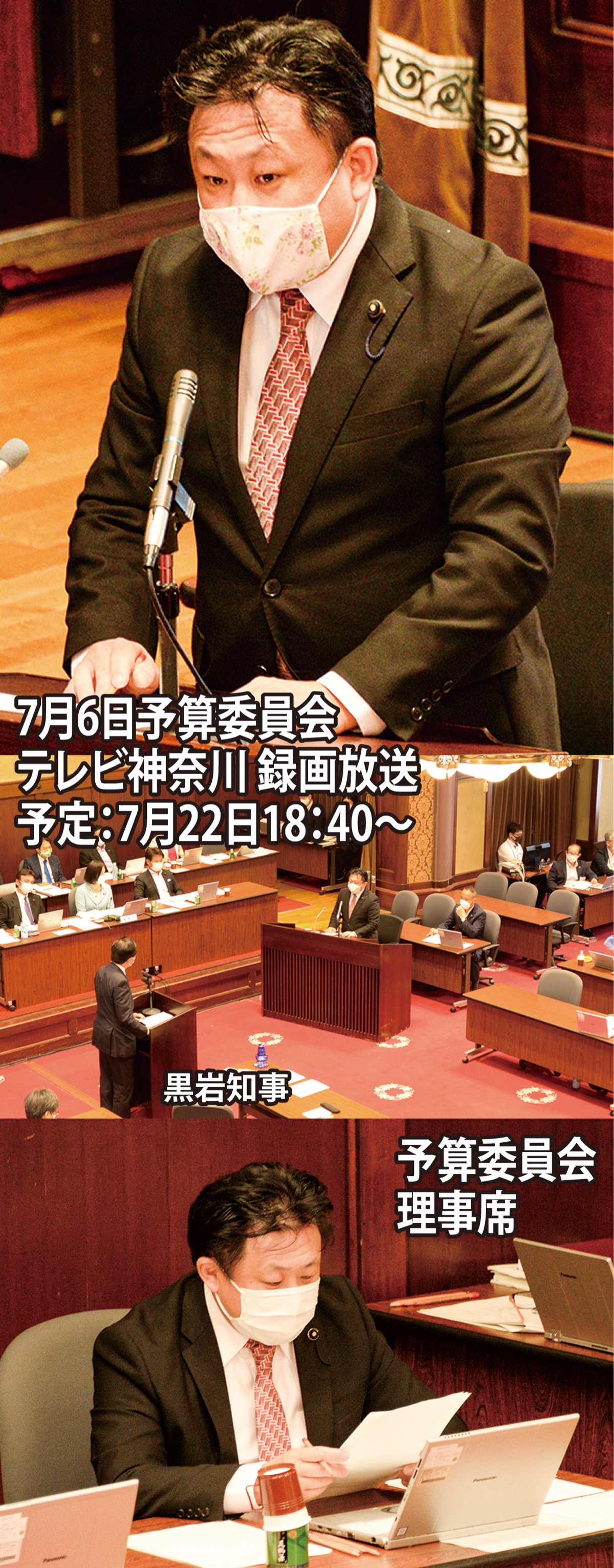 予算委員会(総括質疑)は、7月22日(水)、18時30分から19時55分の放送予定(テレビ神奈川)です。