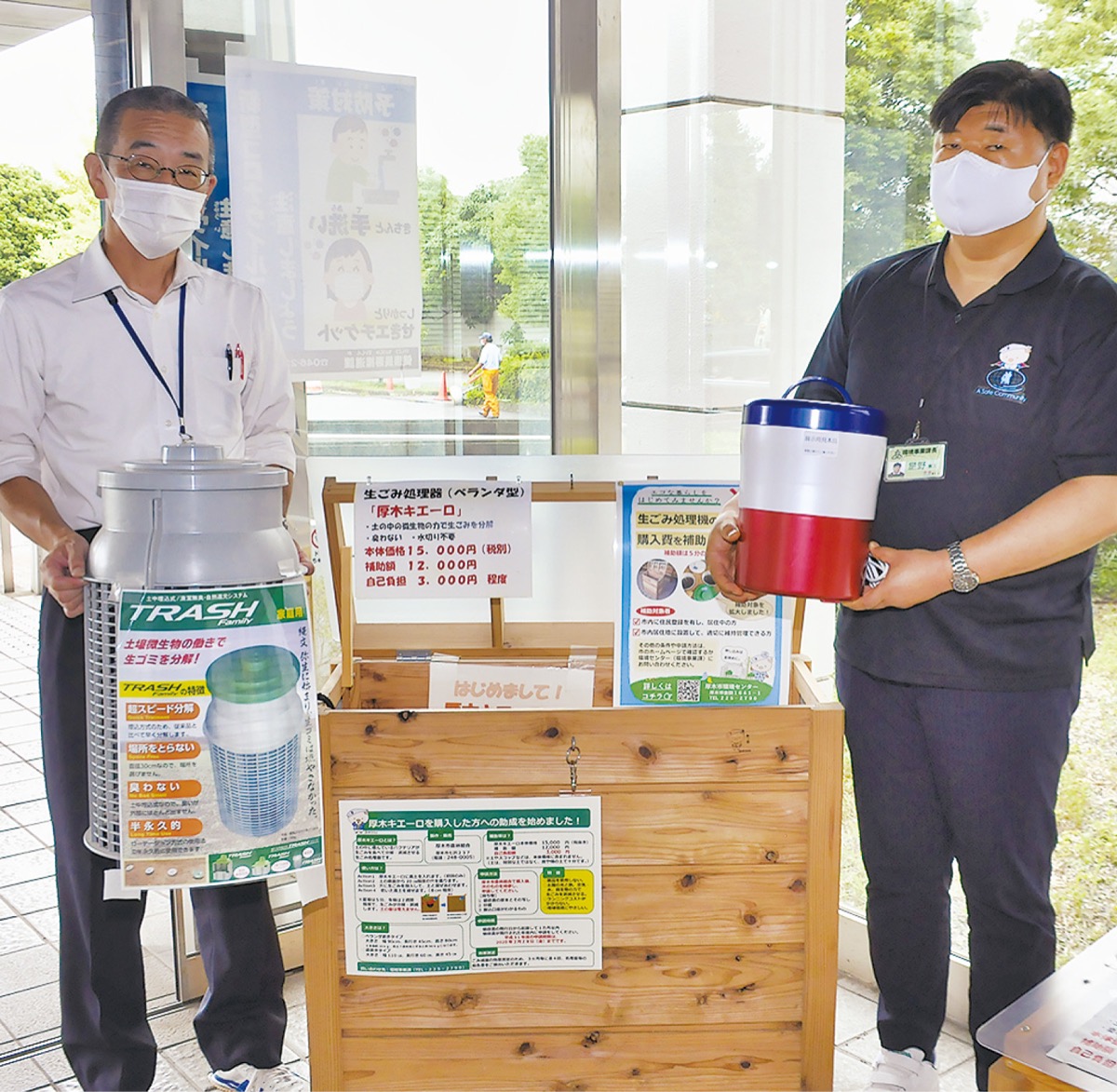 厚木市では、2018年度からごみの減量、市内の間伐材の有効活用などの観点から厚木市森林組合が製作、販売する「厚木キエーロ」の購入に対して補助を行ってきた。しかし、キエーロを設置できないマンションに住む人などから、「ほかの生ごみ処理器で補助を受けられないか」という問合わせがあり、市では更なる減量化へ向け、今年の1月1日から補助対象を生ごみ処理機全般に拡大した。市環境事業課では、「電動式の申請が増えており、補助の選択肢を広げたことで、件数が増えたのでは」と分析する。