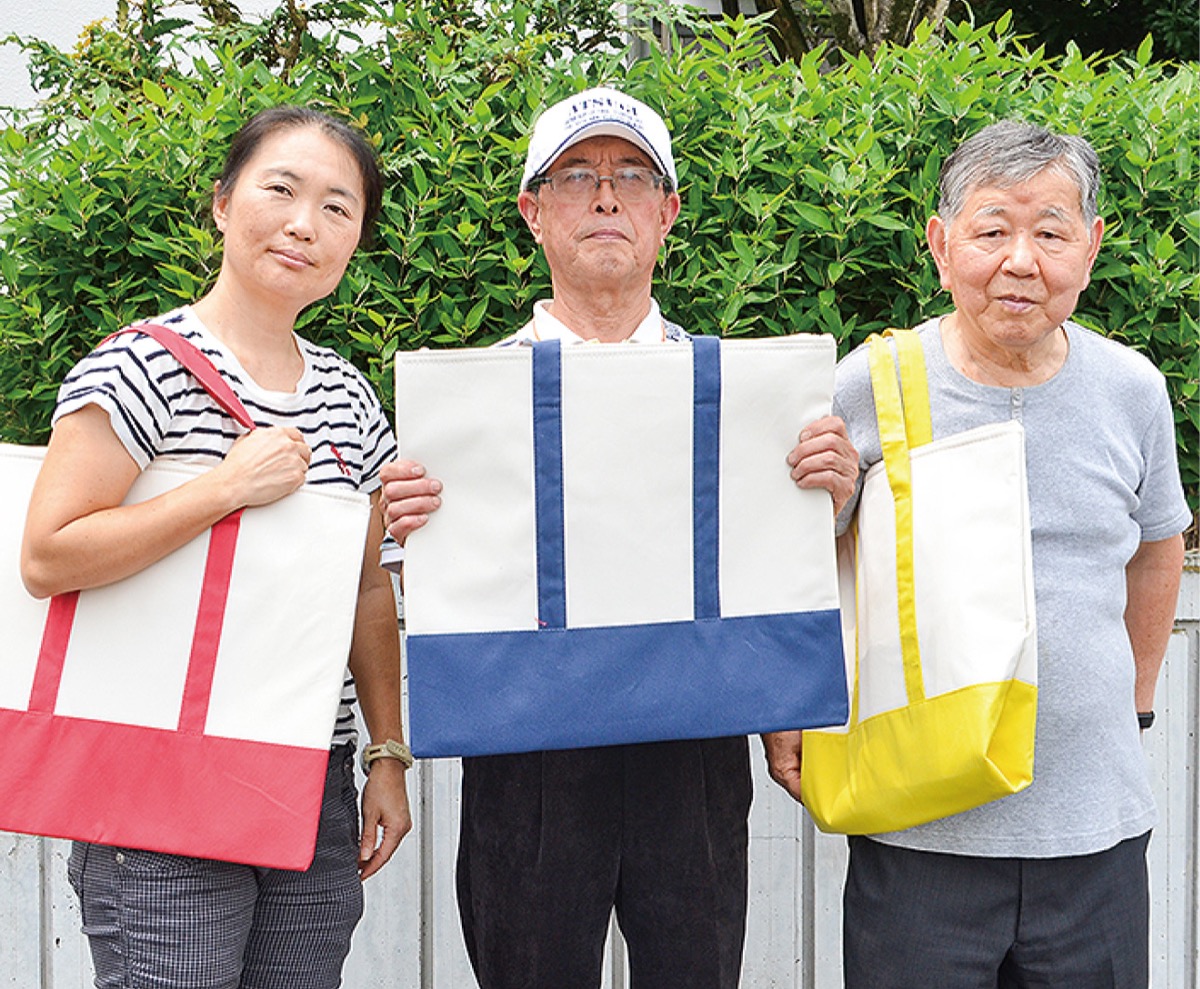 7月1日から始まったレジ袋有料化にあわせて、愛川町の熊坂区自治会(熊坂建夫区長)がショッピングバックを配布した。