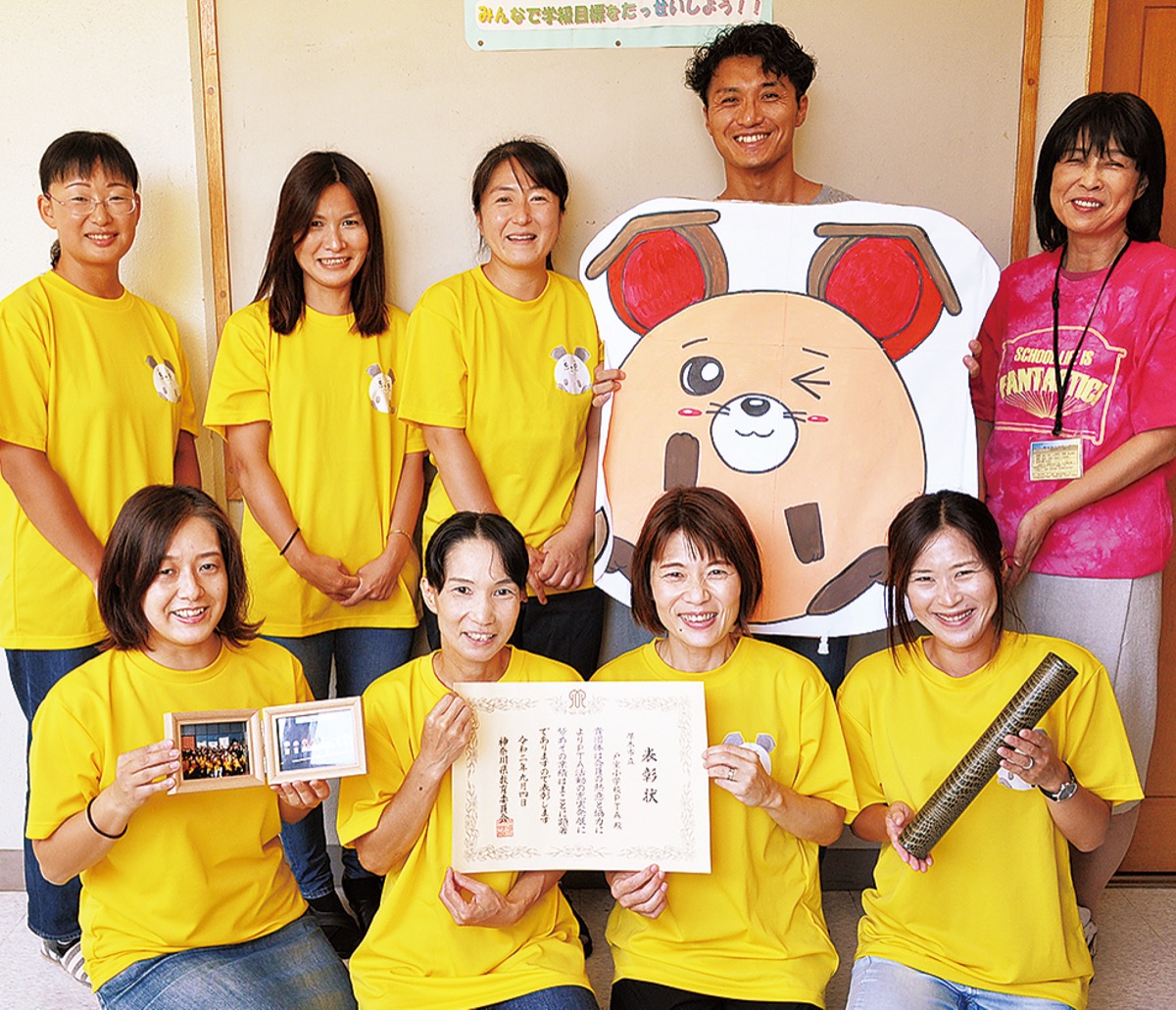 本部役員、委員会、サークルからなる戸室小PTA(室田陽子会長)。「表彰式で『おめでとうございます』の言葉をいただき、実感がわいてきた。PTA活動に携わってこられた本部役員、全委員会、サークル、保護者、学校職員、地域の皆さんに感謝の気持ちでいっぱい」と喜びを話す。