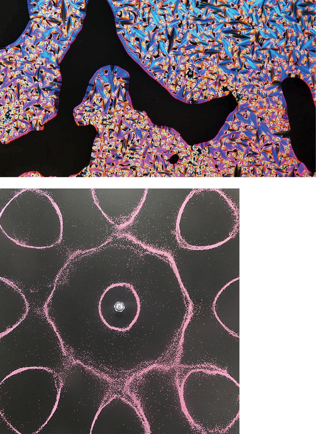 同展では「光の干渉」をテーマに、タマムシやモルフォ蝶の構造色、虹やシャボン玉などの不思議で魅力的な色彩を解説し、これらの現象を利用したアート作品を展示。参加アーティストはクリストファー・マーレー氏、クリス・ウッド氏、菱田真史氏、比江島俊浩氏(同大工学部教授)。