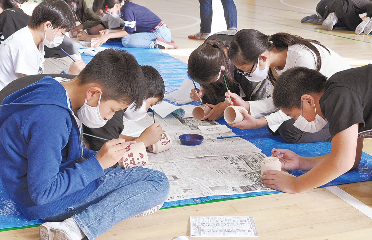 初めて体験したという女子児童は、「手が震えて、絵付け液の分量を調整するのが難しかった」や「デザイン画は平面だったけど、湯呑は丸いのでバランスが難しかった」などと感想を話した。高峰校長は「子どもたちの心に残るものができたのでは。湯呑を見たときに、小学校生活を思い出してもらえれば」と話した。