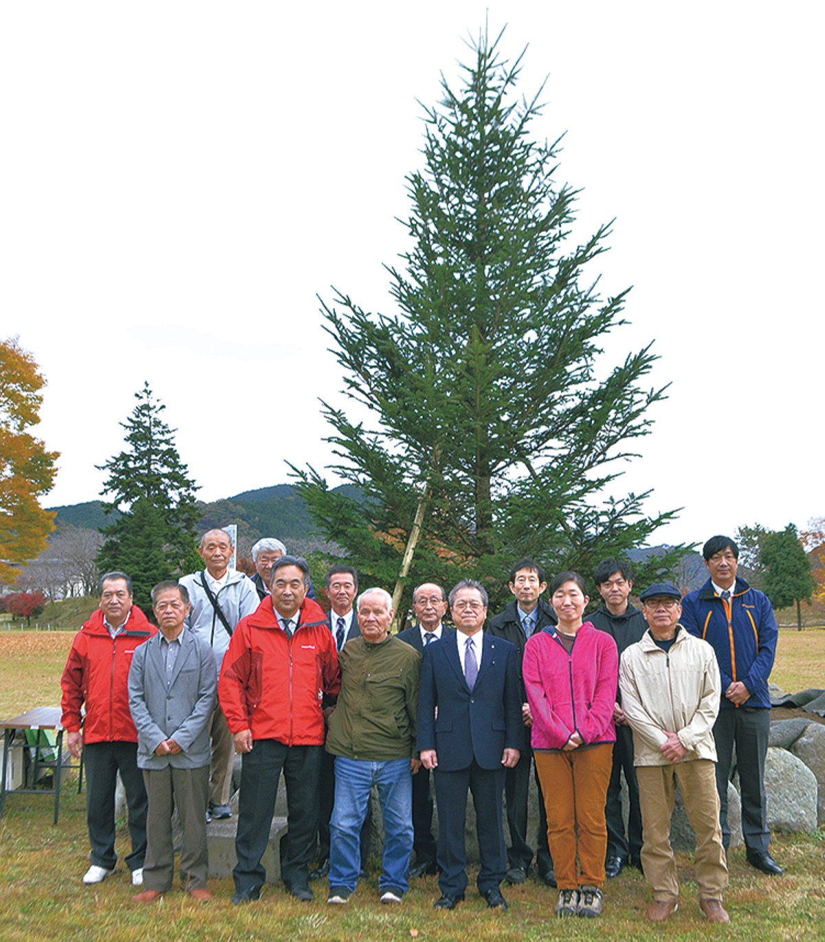 清川村の宮ヶ瀬湖畔園地けやき広場に新たなモミの木が植樹され、11月12日に関係者らによる記念式典が開催された。