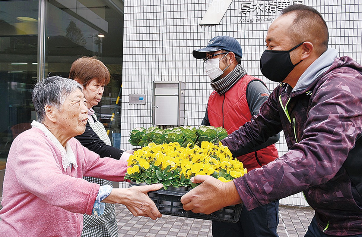 またJAあつぎ青壮年部荻野支部(鈴木貴部長)では11月12日、(社福)かながわ共同会「厚木精華園」、(社福)野百合会「野百合園」、(社福)紅梅会「紅梅学園」の3カ所を訪問し、葉ボタンやパンジーなど計400株を寄贈した。鈴木部長は「たくさんの笑顔が見れました。地元で生産している花きを多くの方々に知ってもらい、今後も地域交流の輪が広がっていけば」と話した。