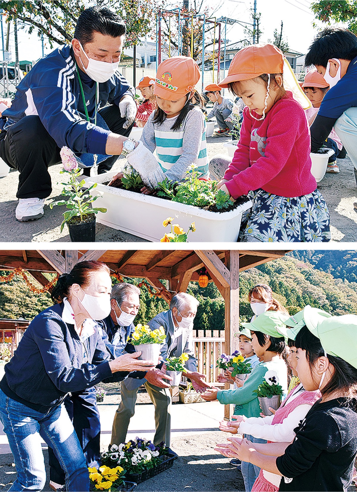 その一つである厚木市下津古久の相川保育所では11月13日、ビオラやストックなど約400株の花きが贈られた。相川支所の組合員が園児たち育て方を教えながら、園児と一緒になって、用意されたプランターに丁寧に植え付けを行った。
