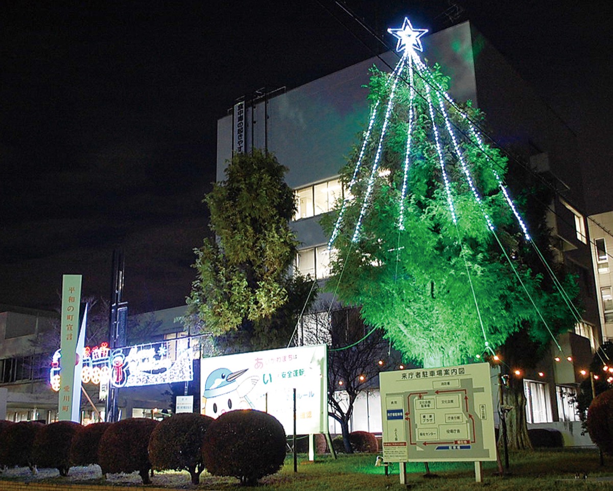愛川町役場で12月1日から、愛川町電設協会のイルミネーションが点灯している。
