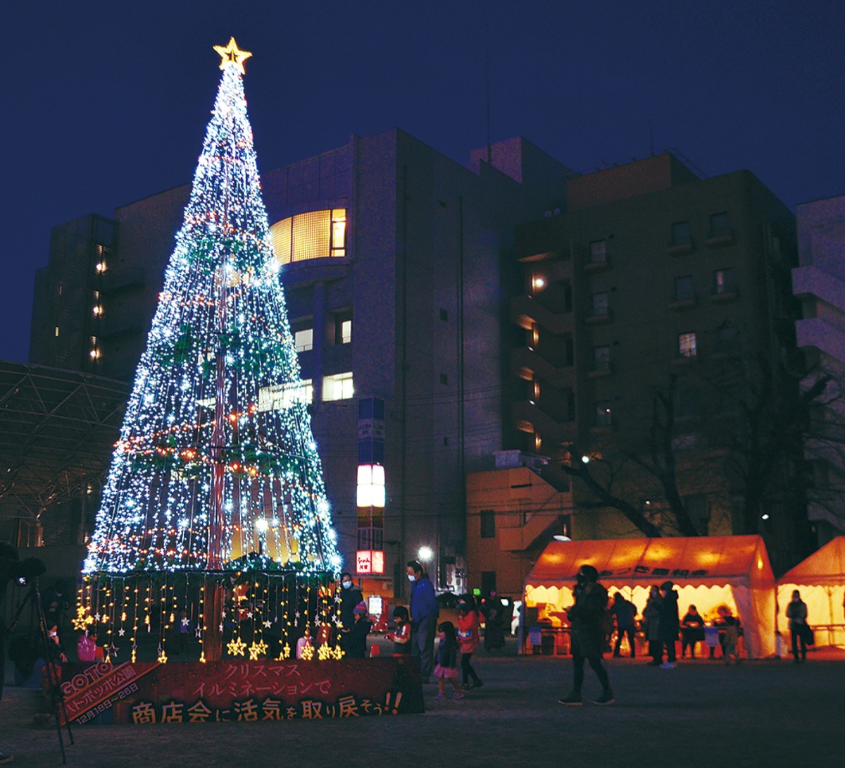 これは、新型コロナの影響を受けた駅前の事業者を支援するとともに、クリスマスのイルミネーションを多くの人に楽しんでもらおうとあつぎ商和会が企画したもの。期間は12月26日(土)までで、高さ約8mのツリーが午後4時から9時まで点灯。会場では商店会の協力店で使える優待チケット付きチラシや野菜詰め合わせ、ポケットティッシュケースなどを無料配布している(先着順・無くなり次第終了)。