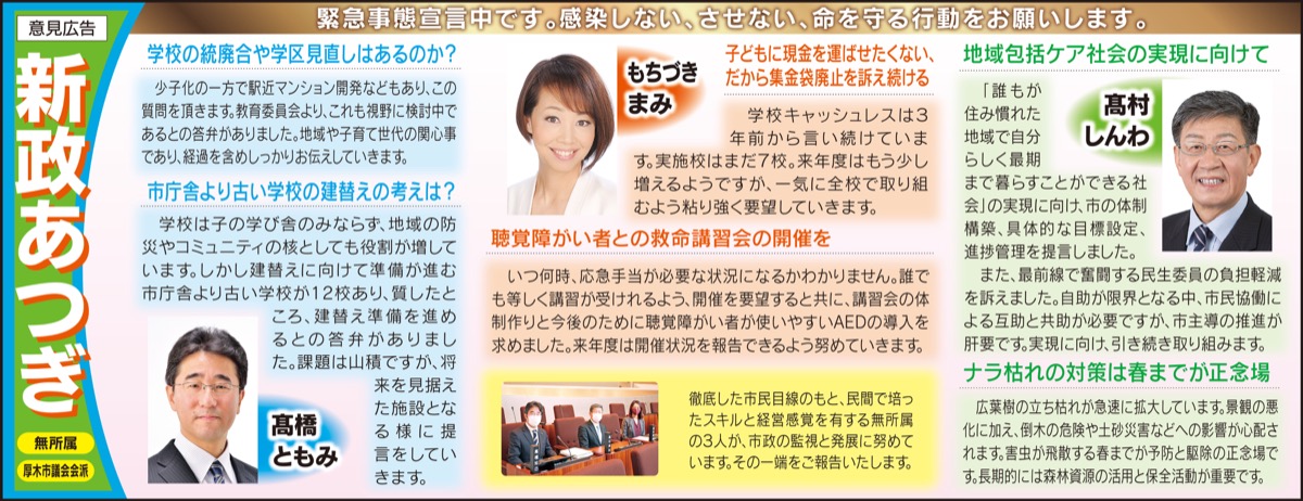 徹底した市民目線のもと、民間で培ったスキルと経営感覚を有する無所属の3人が、市政の監視と発展に努めています。その一端をご報告いたします。
