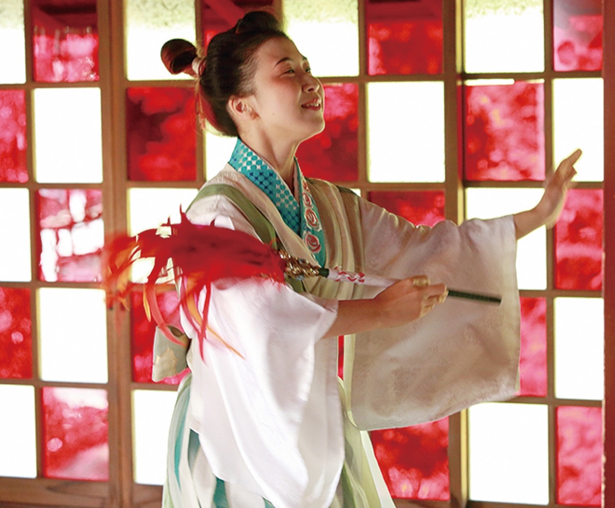 厚木市上荻野の岸邸や同七沢の愛宕社、愛川町中津の古民家山十邸等で神楽師の垣澤瑞貴さんが舞い、「森羅万象すべてに神は宿る」というコンセプトを元に、美しく艶やかな作品を創作した。