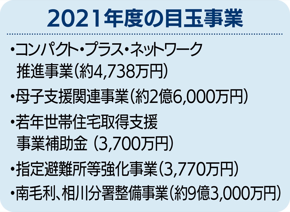 さらに、妊娠期から子育て期にわたり、母子を切れ目のないサポートで支える「母子支援関連事業」(約2億6000万円)、戸建て住宅、分譲マンションの取得を後押しし、子育て世代の厚木定住を促進する「若年世帯住宅取得支援事業補助金」(3700万円)も目玉事業に挙げる。