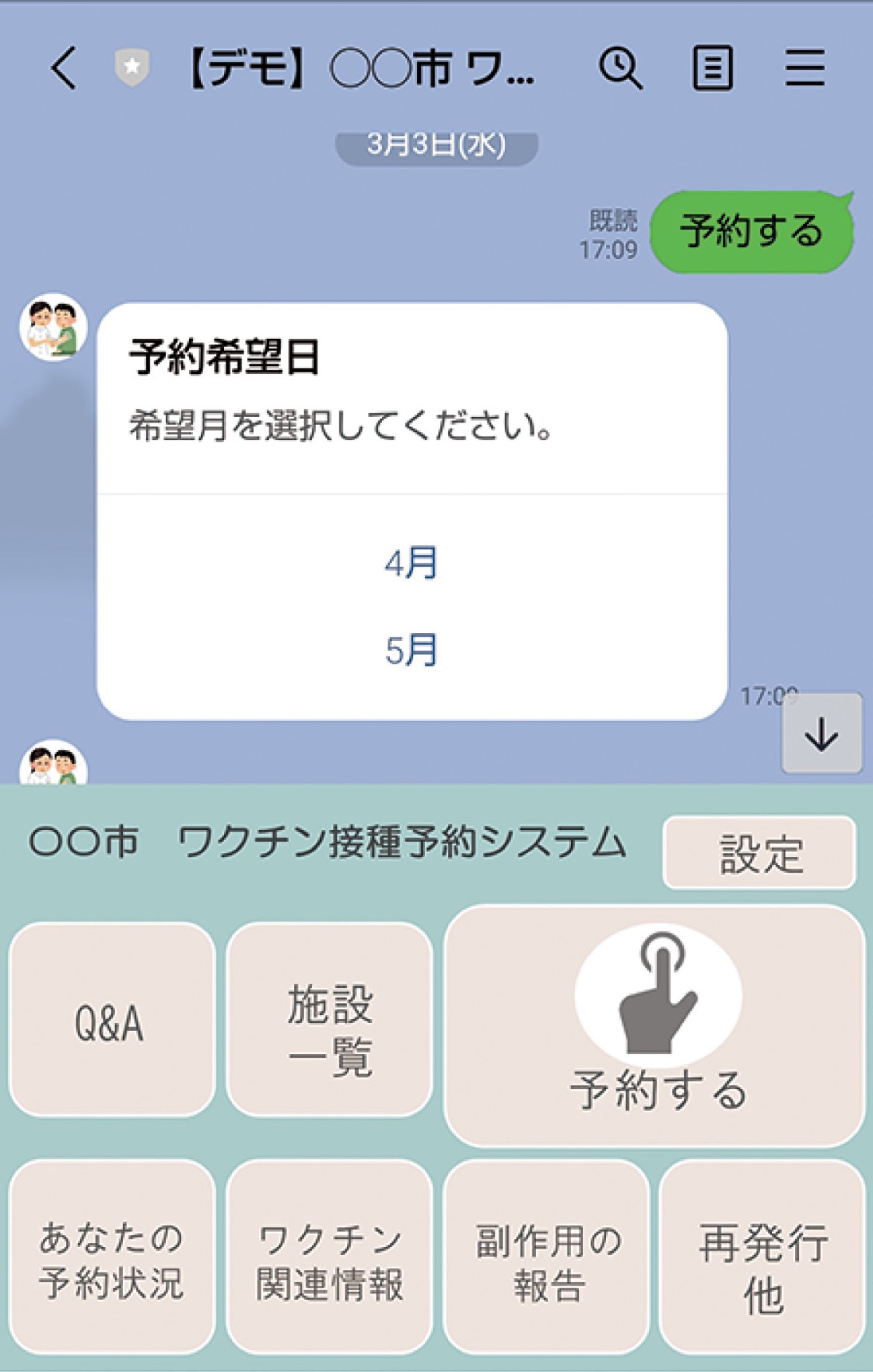 一方、「ラインワクチン接種予約システム」を導入する市町村が増えています。このシステムは、予約だけでなく、自分の予約状況の確認、キャンセル、再予約、更に副作用の報告や接種券の再発行手続き、問合せ等もラインから24時間迅速に行えます。