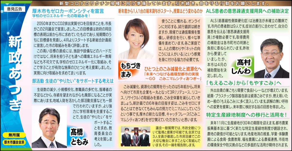 議会一般質問では、市政全般について監視と提案が可能です。会派では3人全員が徹底した市民目線でこの大切な機会に余すことなく取組んでいます。その一端を報告致します。