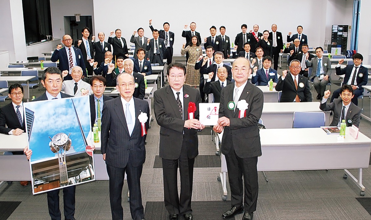 寄贈について黒栁会長は「社会全体がまだ豊かとはいえない時代に創立し、世のため人のためという高い志を持って先輩方が歴史を重ねてきた。南口の再開発にあわせて時計塔を寄贈できることはとても光栄なこと。新たな100年に向けて活動を続けていきたい」と話した。