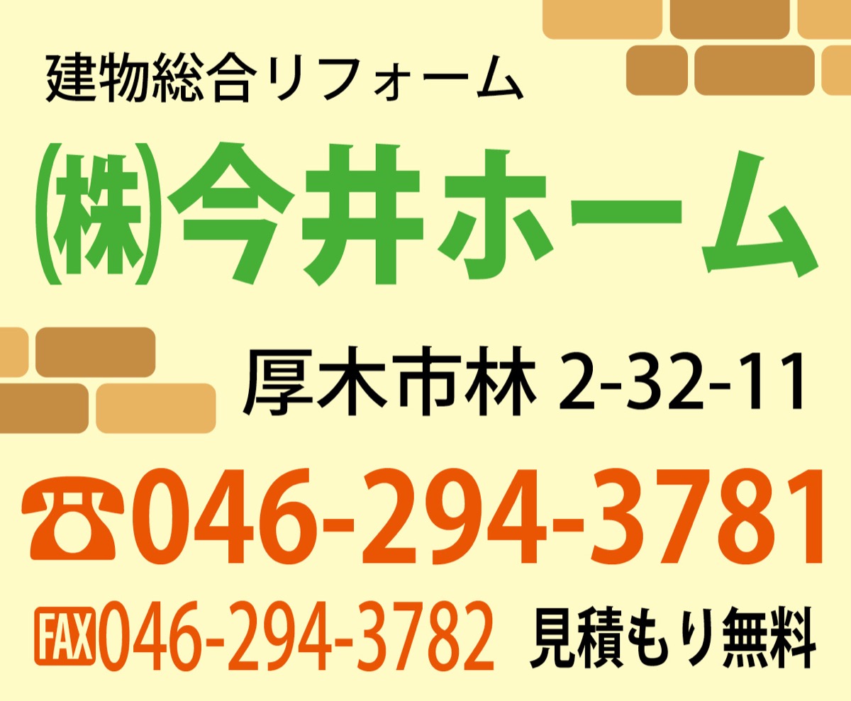 地元厚木で20年にわたり、戸建からマンション・店舗の新築・内外装工事、修理・修繕等を手掛ける「(株)今井ホーム」は、地元密着で迅速・丁寧に対応。屋根や外壁、窓のほか、駐車場、外構など修繕が必要な住まいのちょっとした不安にも相談に乗ってくれる。