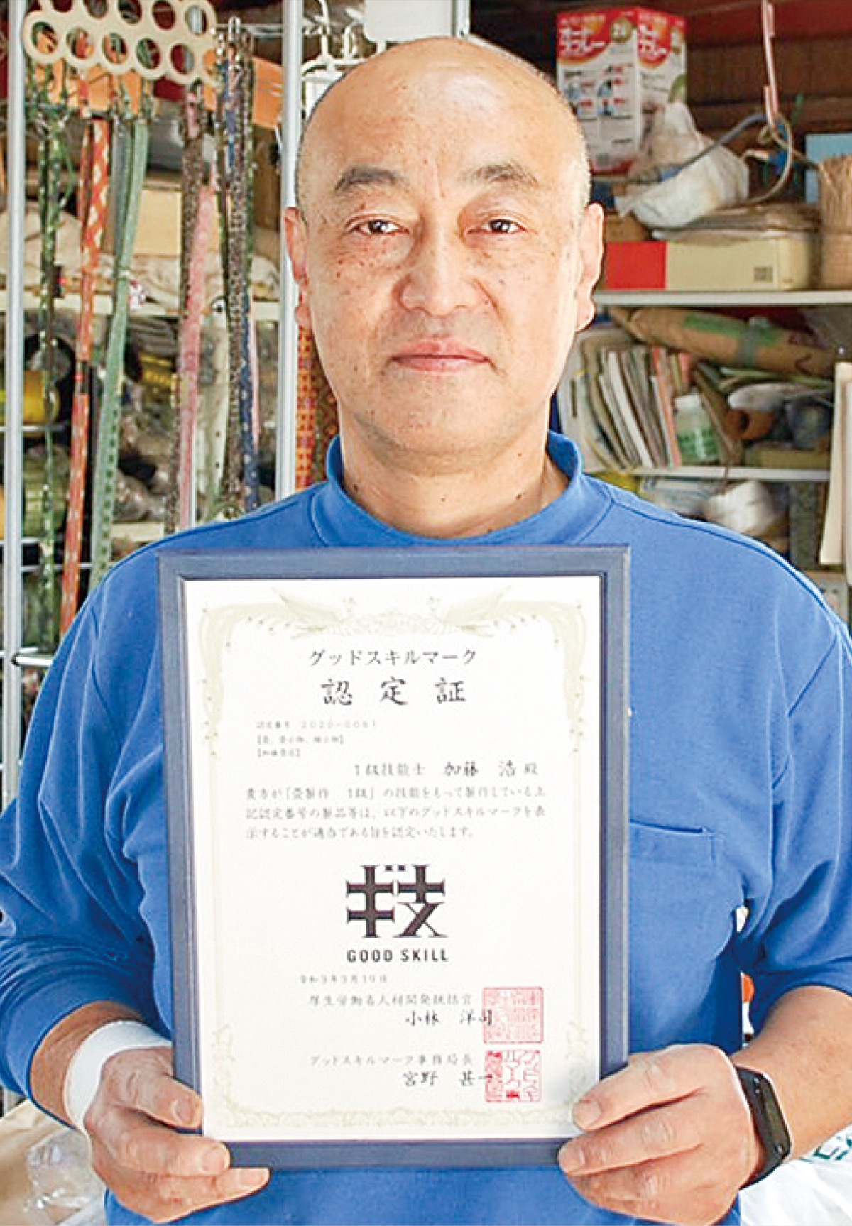 清川村煤ヶ谷にある加藤畳店の畳や畳小物、縁小物が、令和2年度の「グッドスキルマーク」に認定された。