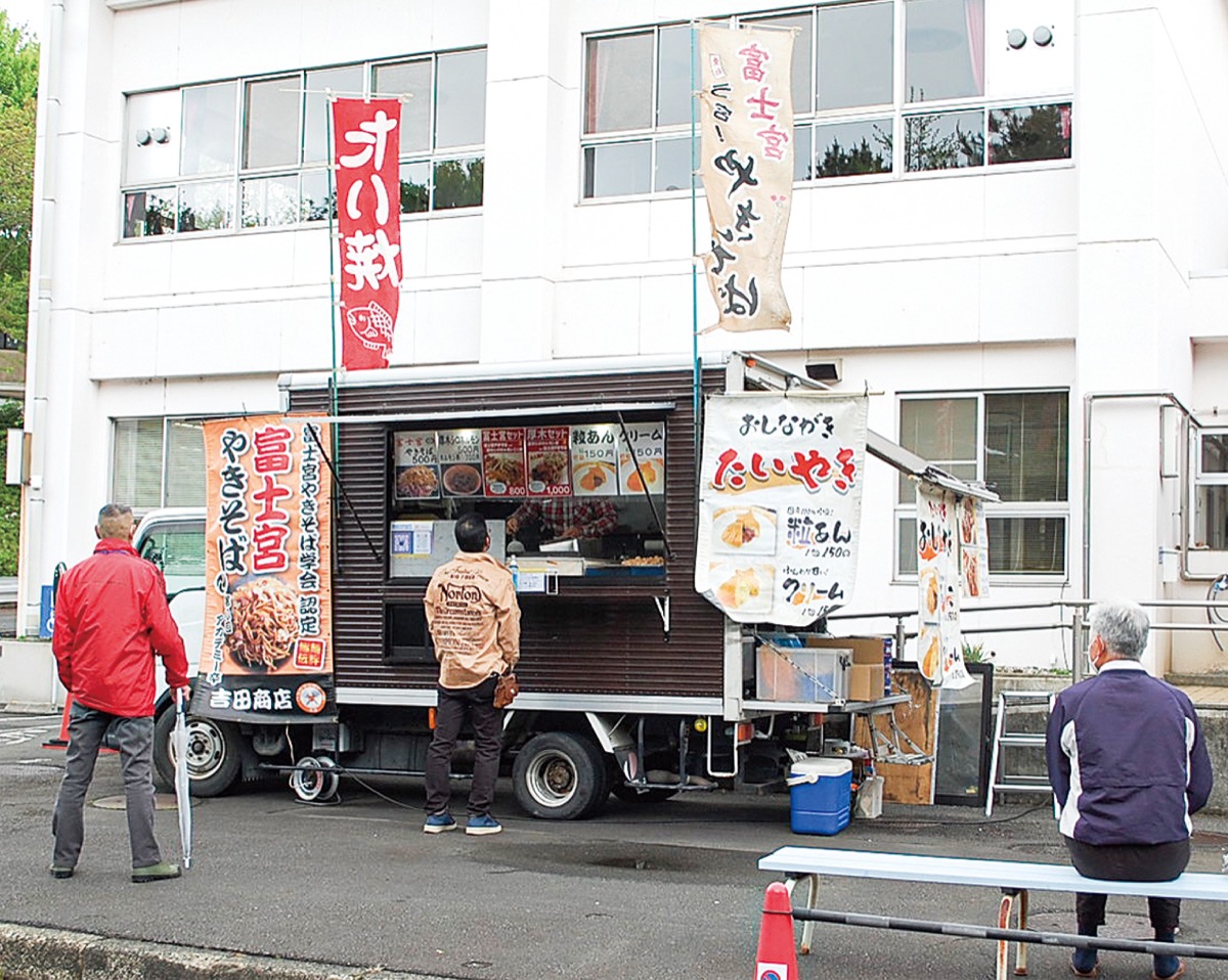 当日は、たい焼きと富士宮焼きそば、ホルモン炭火焼きを出すキッチンカーが午前11時から午後5時まで出店。施設を訪れた人や近隣住民が利用し、中には情報を聞きつけわざわざ車で訪れる人の姿も見られた。