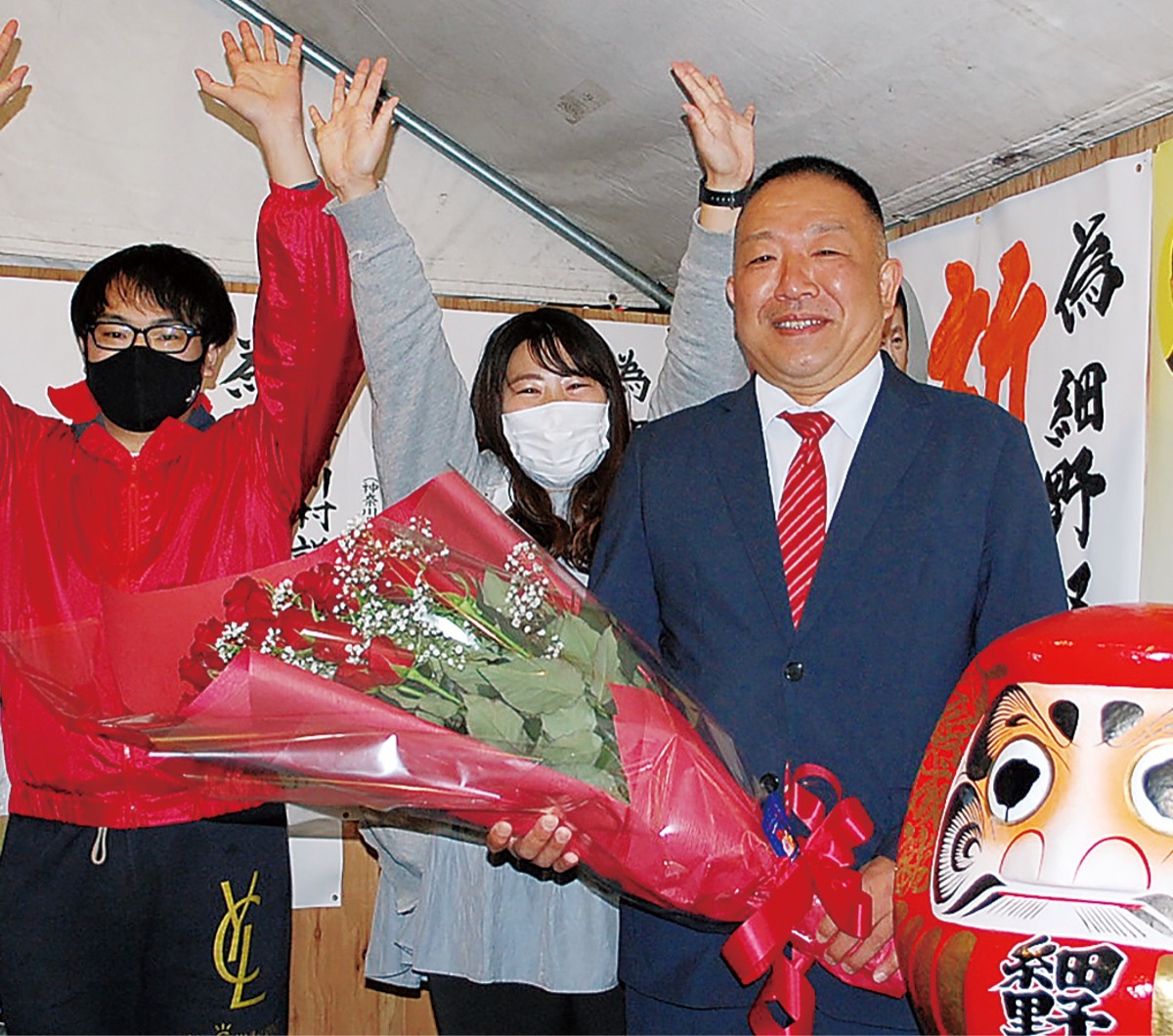 投開票の結果、現職の細野賢一氏が2017年の前回に続きトップ当選を果たした。午後10時過ぎに投票結果が確定すると、細野氏は自宅で支援者らと当選を喜んだ。本紙の取材に細野氏は「定数の削減など、議会改革が受け入れていただけた結果だと思う。多くの方からの付託に応え、更なる議会改革を進めていきたい」と話した。