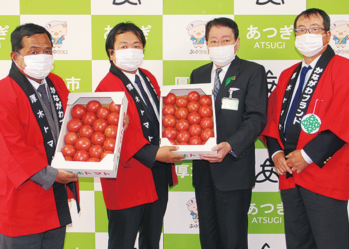 また同部会は4月20日、厚木市役所を訪問。小林常良市長にトマトを贈呈し、市内の消費拡大に向けてPRを行った。