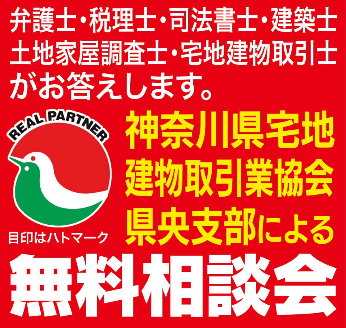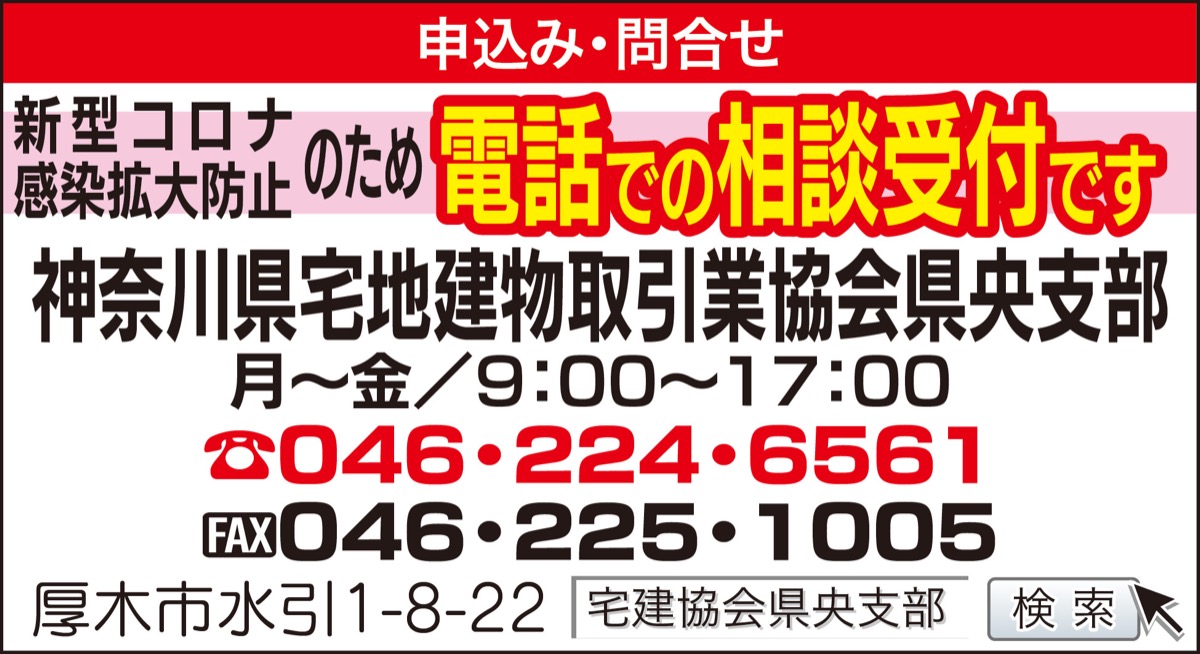 (公社)神奈川県宅地建物取引業協会県央支部(三橋義人支部長)主催の「六士業専門家による無料相談会」が、5月22日(土)の10時〜16時に開かれる。今回は新型コロナ感染拡大防止のため、電話で相談を受け付ける。