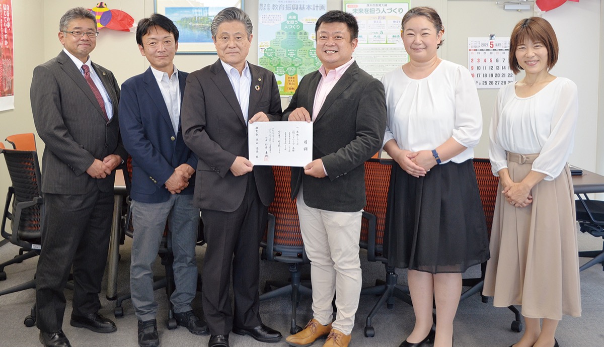 5月14日には、その報告のため、臼井会長らが曽田高治教育長のもとを訪問。曽田教育長は、「各校で手洗い、消毒、マスクの着用、密を避けるといった感染予防を徹底しているので、ハンドソープの寄贈は大変助かる。コロナ禍でいつもと違う学校生活の中、PTAの皆さんに支えてもらい大変心強い」と話した。