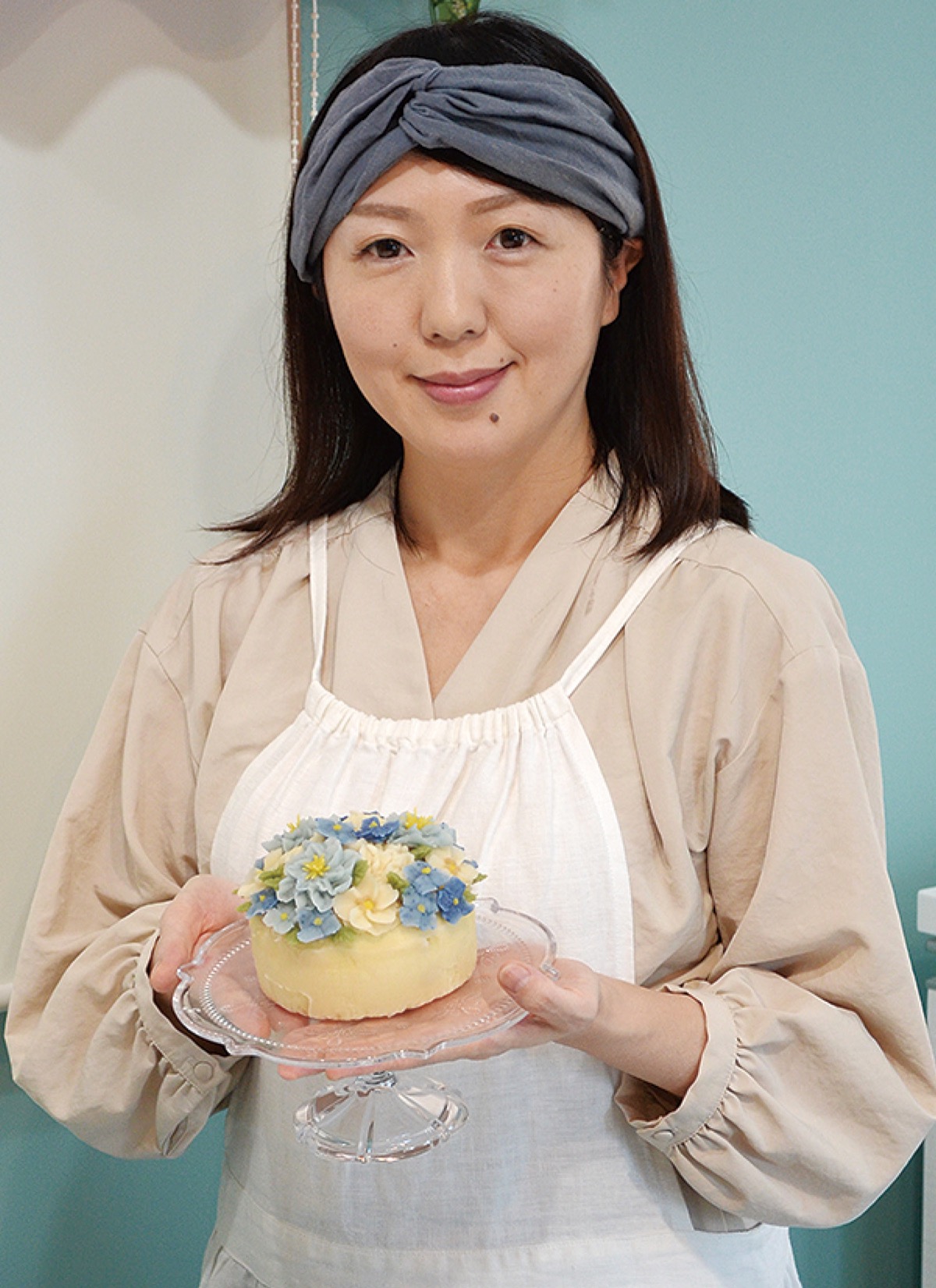 ▽しかし、コロナ禍で教室は中止。そんな最中、ネット検索をしていた時に出合ったのが「あんフラワー」だった。4・5年ほど前に、講座に参加したことがあったが、そこでは合成着色料を使用したあんこを使うのが自身には合わず、それきりだった。今回は、天然の色素で着色したやさしい色合いのあんこを使う方法に出合い、感動。昨年末、教室に通い、正月は1日10時間あんこを絞った。その後、試験にチャレンジ。2回目の挑戦で合格し、教室を開く準備を進め、今年3月に開講した。