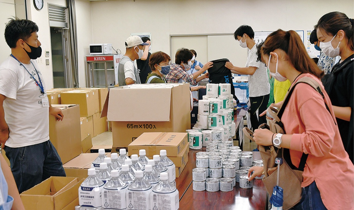 当日、配布場所ではフードバンクスタッフらが、提供する食品を仕分け、学生らに米や缶詰、レトルト食品、水などを配布。学生らは「ありがとうございます」「いただきます」などと感謝の言葉を伝え、食品を受け取った。