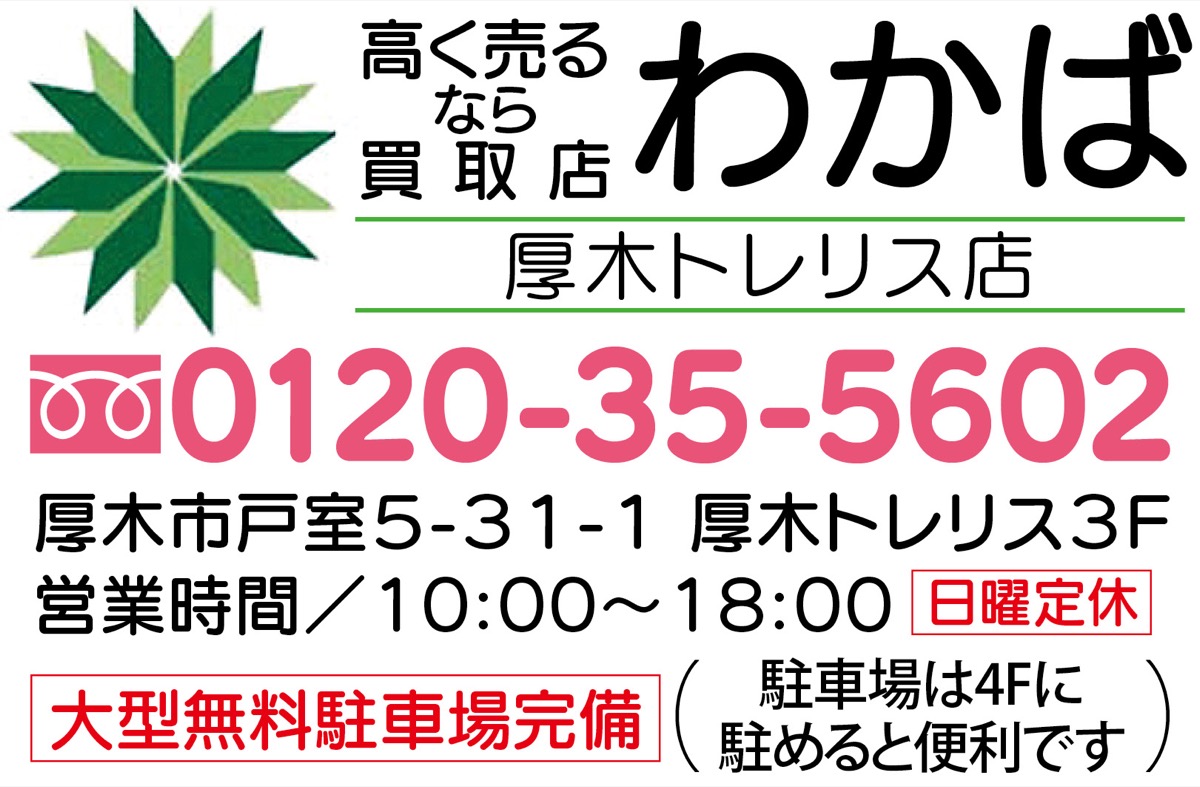 全国に130店以上を構える厚木トレリス3階の「買取店わかば」(大型駐車場完備)では、9月11日(土)まで健康食品の買取を強化している。