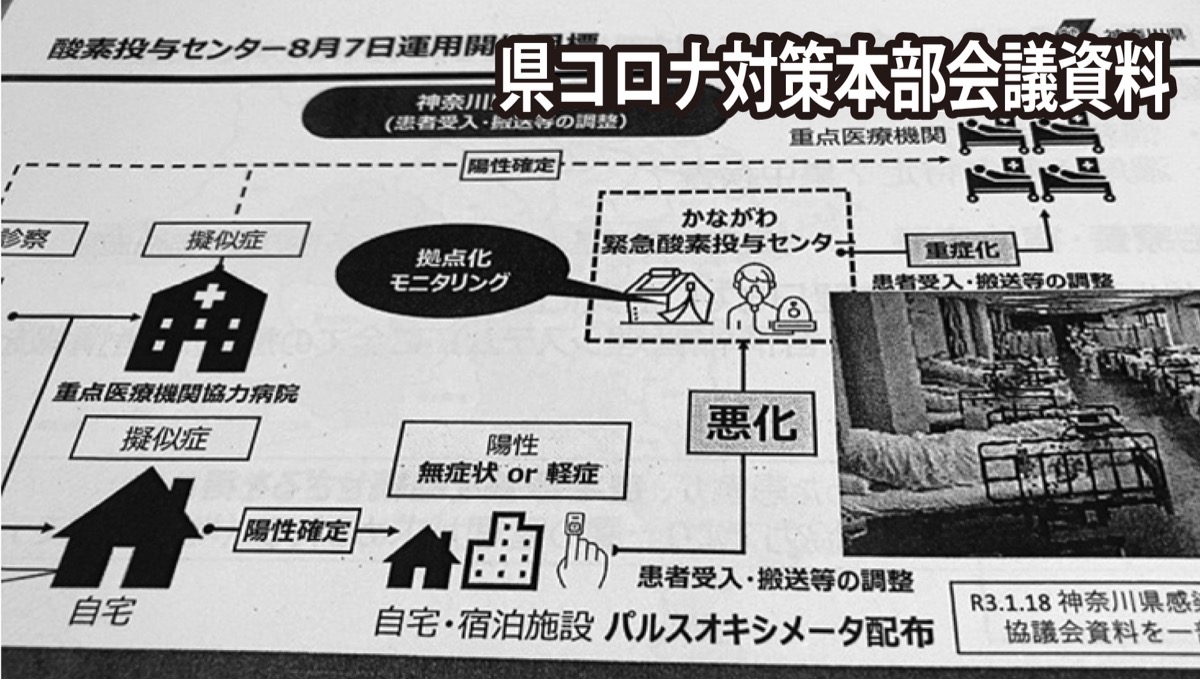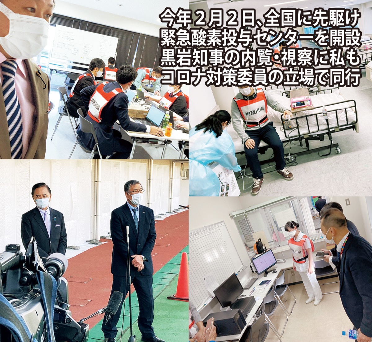入院調整も困難を極めて います。患者の搬送先が 決まる迄の間、酸素投与 をするため一時的に入る 「酸素ステーション」は、既に県で稼働しています。同施設は全国に先駆けて設置し、私も知事の内覧に同行しました。視察の様子は、テレビや新聞等メディアを通じ広く報道されました。新型コロナ中等症患者を対象とした県の臨時医療施設の設置も議会で実現しました。