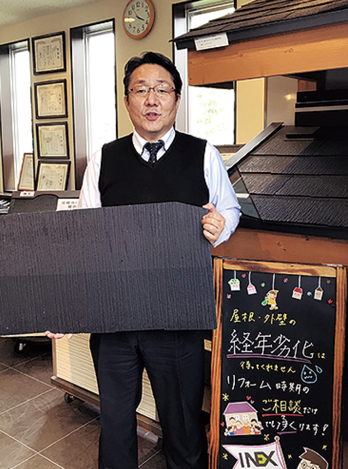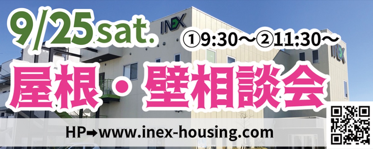 屋根・外壁の施工を得意とする(株)アイネックス。9月25日(土)にR246号沿いにある本社で「屋根・壁相談会」を開催する。