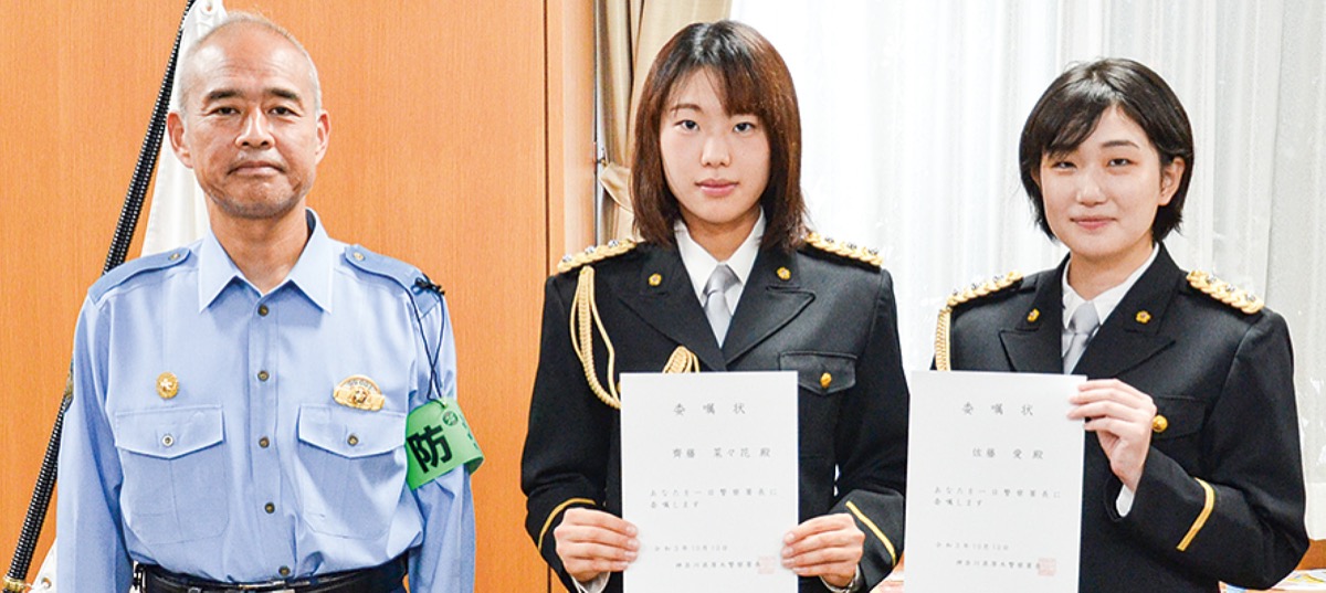 2人は署長室での委嘱式に参加すると、押部修一厚木署長から委嘱状を受け取った。佐藤さんは「警察官だった祖父の話を聞くうちに、人のためになる仕事がしたいと警察官を志望するようになった。励みにしたい」と話すと、齊藤さんは「人に誇りを持って言える仕事に就きたくて警察官を考えている。今日は警察官の仕事を身近に感じることができれば」と話した。