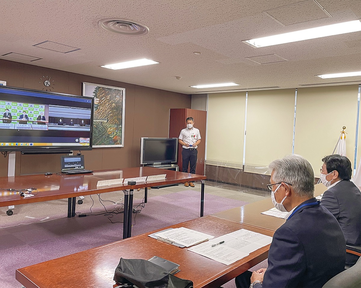 表敬訪問は新型コロナウイルス感染対策のため、オンライン形式が採用された。同社野球部の田中幸茂副部長と坂野学監督、見目(けんもく)雅哉主将が画面を通して、小林市長と佐後佳親教育長らに意気込みを語った。