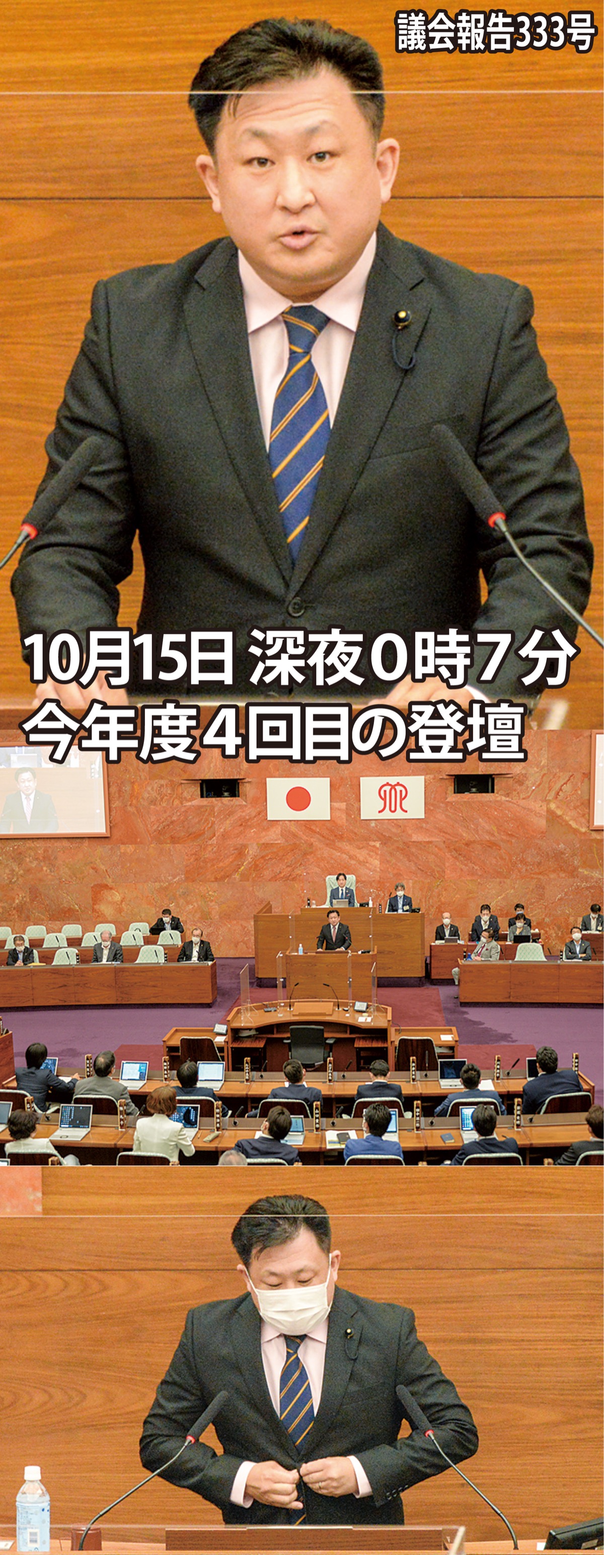 今年度は、4月20日の本会議討論(447億円)に続き、5月11日、9月30日、10月15日、「さとう知一」が県議団を代表し本会議討論に立ちました。今年度通算4回目となる本会議「討論」の登壇です。