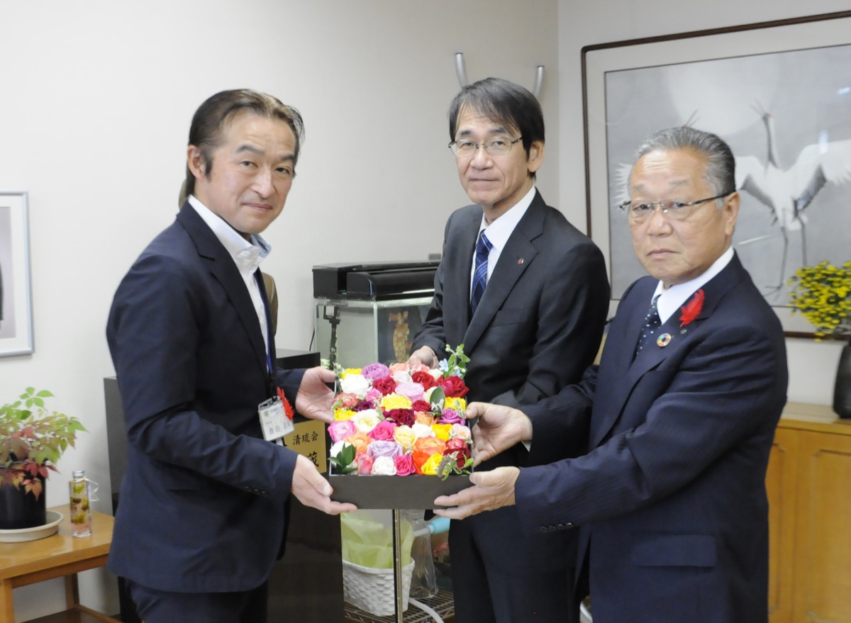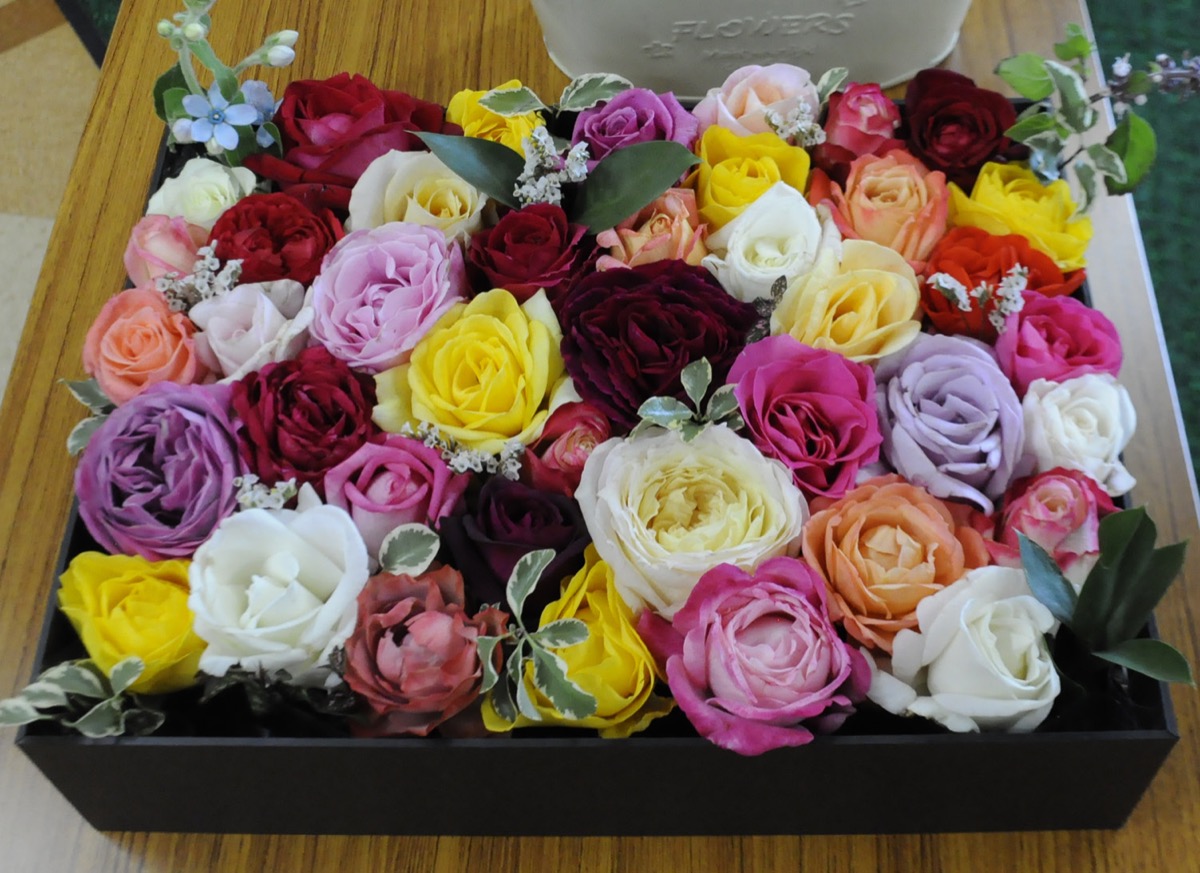 寄贈したフラワーボックスは、同社の工場で育てているバラの中から秋に見頃を迎えるバラを選りすぐったもの。縦35cm×横25cmほどの箱に色とりどりのバラを敷き詰めた。当日は同社取締役厚木工場長の高橋克彦さん、厚木工場生産総務部総務グループグループリーダーの玉置清次さん、顧問の中野和辰さんが厚木市社協の山口泉会長と施設を訪れ、原田理事長にフラワーボックスを手渡した。高橋さんは「こういう時期なので、バラが皆様の癒しになれば嬉しい。香りもぜひ楽しんで頂ければ」と伝えると、原田理事長は「外出や面会に制限がある中で、みなさんにどうやったら季節を感じてもらえるかを考えている。このようなお花はみなさんの楽しみになると思う」と感謝した。