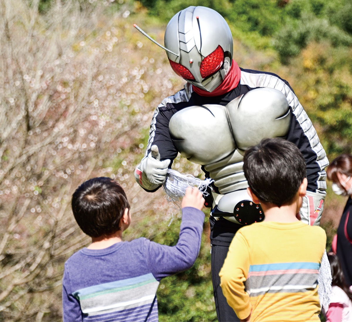 会場となった七沢森林公園、七沢温泉中屋旅館、七沢観音寺では、仮面ライダーや漫画のキャラクターが登場。参加者たちは、紅葉が見頃を迎えた七沢で撮影などを楽しんだ。また、ゲストに厚木市指定無形民俗文化財「相模里神楽」の垣澤瑞貴さんも天狐となって参加した。偶然居合わせた子ども達も大喜び。コスプレイヤーと触れ合う一幕も。同観光協会では「新たな観光資源の活用方法として、今後も色々なイベントを企画していきたい」と話す。