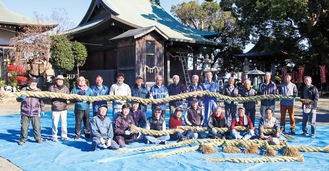 年末恒例の新年のしめ縄作りが12月4日、妻田薬師で行われた。