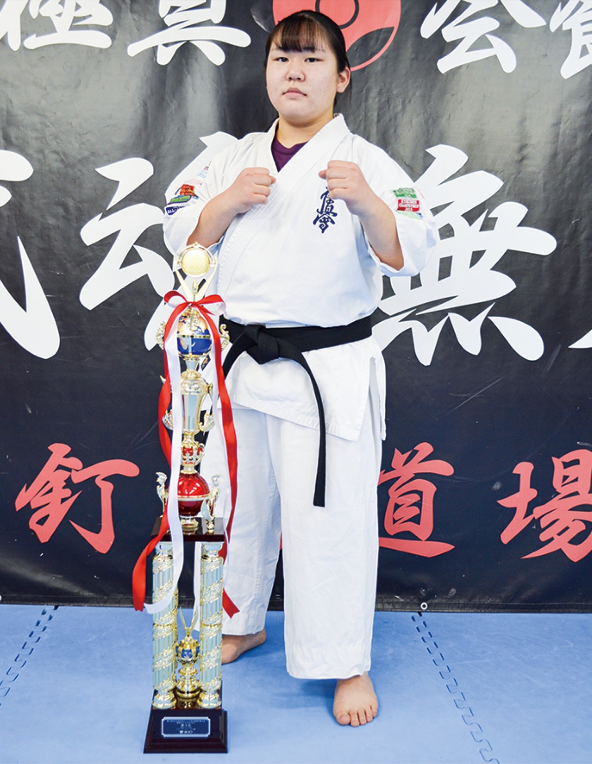 同大会は「カラテ甲子園」とも呼ばれ、各地の予選を勝ち抜いた小学生から高校生が出場。諏訪本さんの階級には19選手がエントリーし、日本一の座を争った。