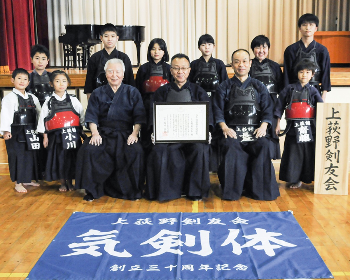 上荻野剣友会(吉田勝行代表)がこのほど、少年少女の剣道指導に尽力したとして、公益財団法人全日本剣道連盟から2021年度の少年剣道教育奨励賞を受賞した。吉田代表は「歴代の先生方の想いを継いで今日に至っている。その方々の努力や尽力が実を結んだ」と喜ぶ。