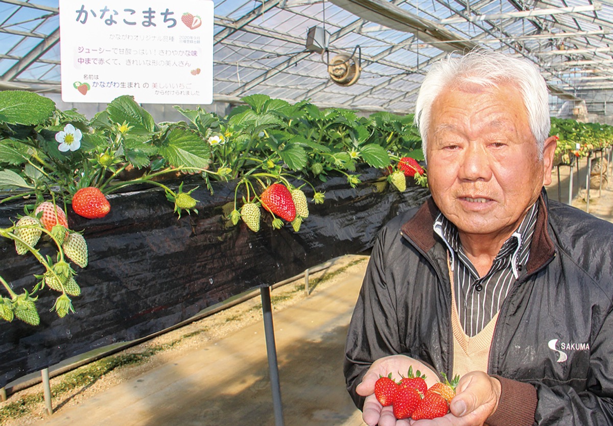 厚木市内で今年「かなこまち」を栽培しているのは3軒。厚木市戸田にある西山いちご園では、昨年6月から本格的な栽培を開始。まだ県内の販売株数の少ない「かなこまち」を試行錯誤しながら株分けし、現在は約3000株を栽培する。「コクがあり、飽きのこない味。食味も良く、食べた方の反応も良かった」と同園の西山守夫さんは話す。